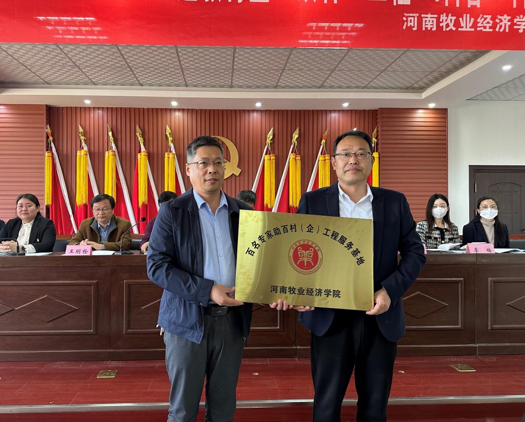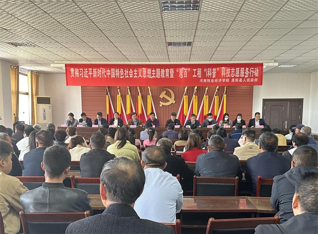 为扎实开展学习贯彻习近平新时代中国特色社会主义思想主题教育,以高质量党建推动“百名专家助百村(企)”工程(“双百”工程)及“i科普”科技志愿服务项目高效实施,助力乡村振兴事业,4月27日,副校长杨宝进带领机关党委、社会服务办公室(党支部)、校友工作办公室、动物科技学院等相关部门、学院负责同志赴原阳县太平镇开展学习贯彻习近平新时代中国特色社会主义思想主题教育暨“双百”工程“i科普”科技志愿服务行动。原阳县副县长杨俊涛,副县长、太平镇党委书记李燚,太平镇镇长张照新等领导出席此次活动。
