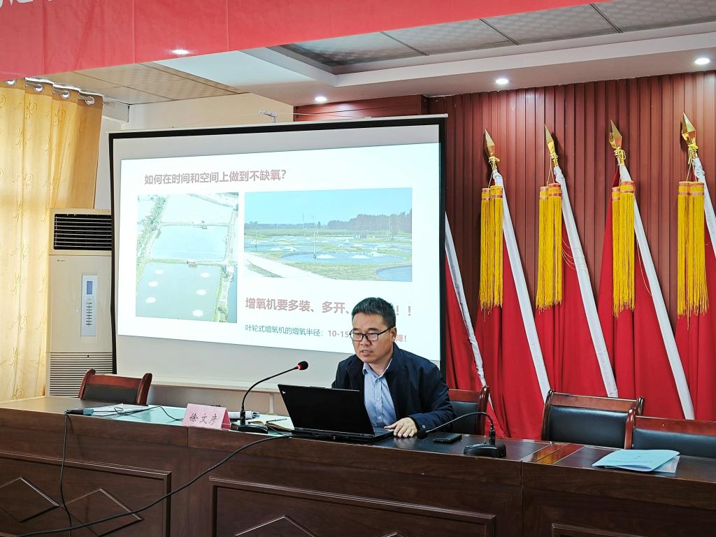 社会服务办公室主任胡华锋为太平镇“百名专家助百村(企)工程服务基地”授牌。此外,校地双方在太平镇联合举办培训开班。培训班上,河南省大宗淡水鱼产业技术体系专家、威尼斯官网动物科技学院副教授徐文彦为太平镇50多家相关企业、水产养殖户100余人作了水产养殖技术方面的专题报告。徐文彦分析了决定池塘养殖成败的8大因素,围绕池塘养殖水质管理、鱼病综合防治技术、高效渔农循环种养技术等问题做了深入浅出的讲解;与学员共同探讨了池塘水质恶化的主要原因、优化水质的具体操作、异常水质的处理和水质调控中心的高效运转等问题。