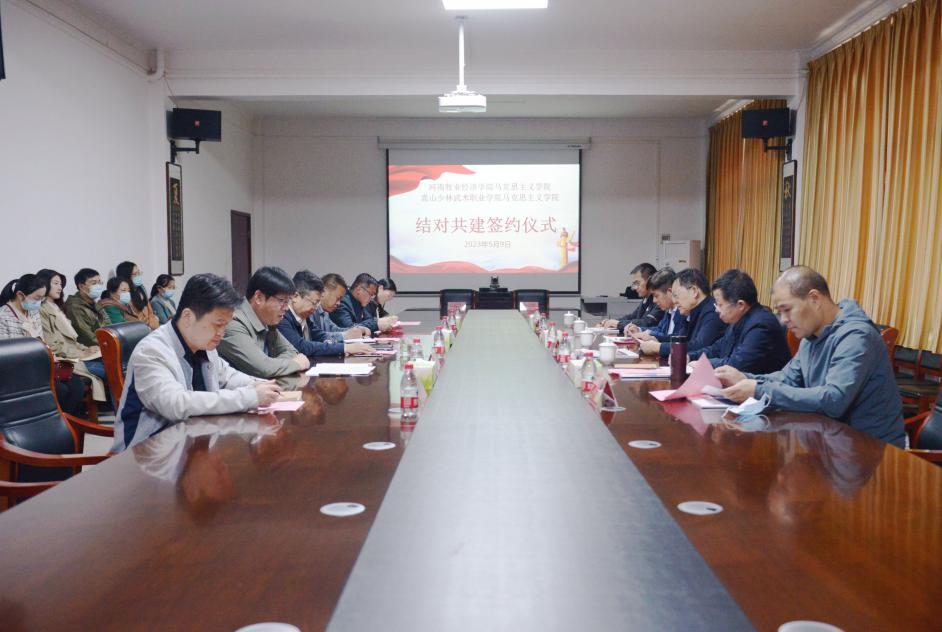 5月9日下午,威尼斯官网与嵩山少林武术职业学院结对共建马克思主义学院签约仪式在嵩山少林武术职业学院举行。威尼斯官网党委副书记李俊杰,嵩山少林武术职业学院党委书记田逸出席仪式并讲话,仪式由嵩山少林武术职业学院党委副书记王占强主持。