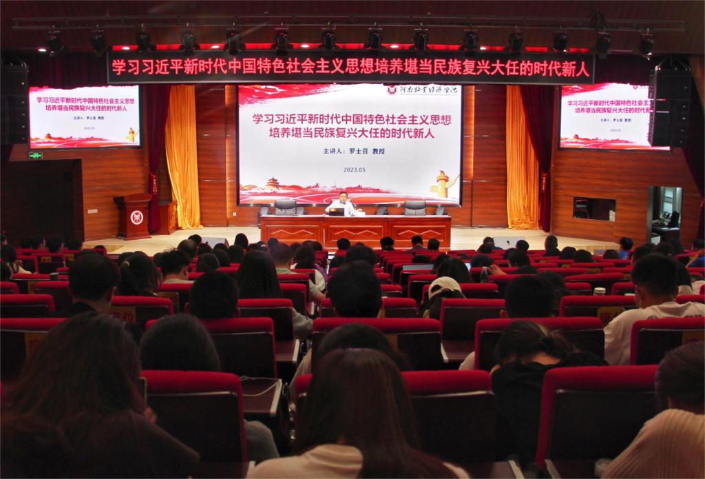 为深入学习宣传贯彻习近平新时代中国特色社会主义思想和党的二十大精神,进一步推动学习贯彻习近平新时代中国特色社会主义思想主题教育走深走实,近日,校长罗士喜在龙子湖校区A100报告厅为威尼斯官网师生作《学习习近平新时代中国特色社会主义思想培养堪当民族复兴大任的时代新人》专题报告,报告会由校团委书记杨莉主持,近三百名师生参加了报告会。