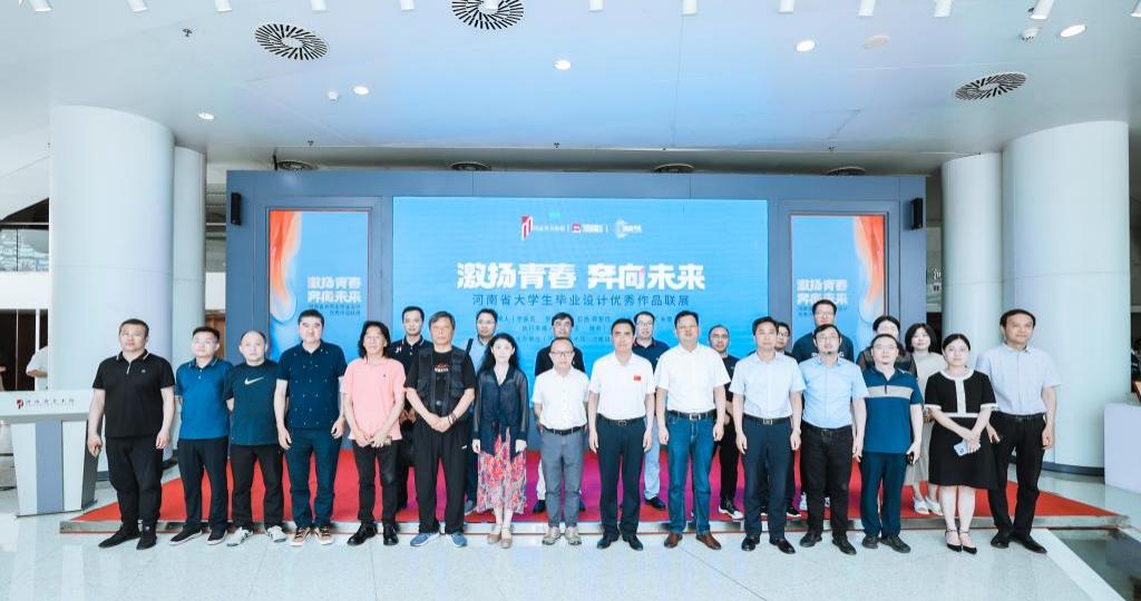 近日,“激扬青春,奔向未来”——河南省大学生毕业设计优秀作品联展在河南省美术馆举行开幕式。此次联展由河南省美术馆、河南日报社顶端新闻主办,来自全省近30所高校艺术设计学院的千余件优秀作品在此汇聚,为观众献上一份“设计河南”的青春答卷。威尼斯官网艺术学院院长张鹏、视觉传达设计教研室主任李好敏以及学生代表参加了本次开幕式。