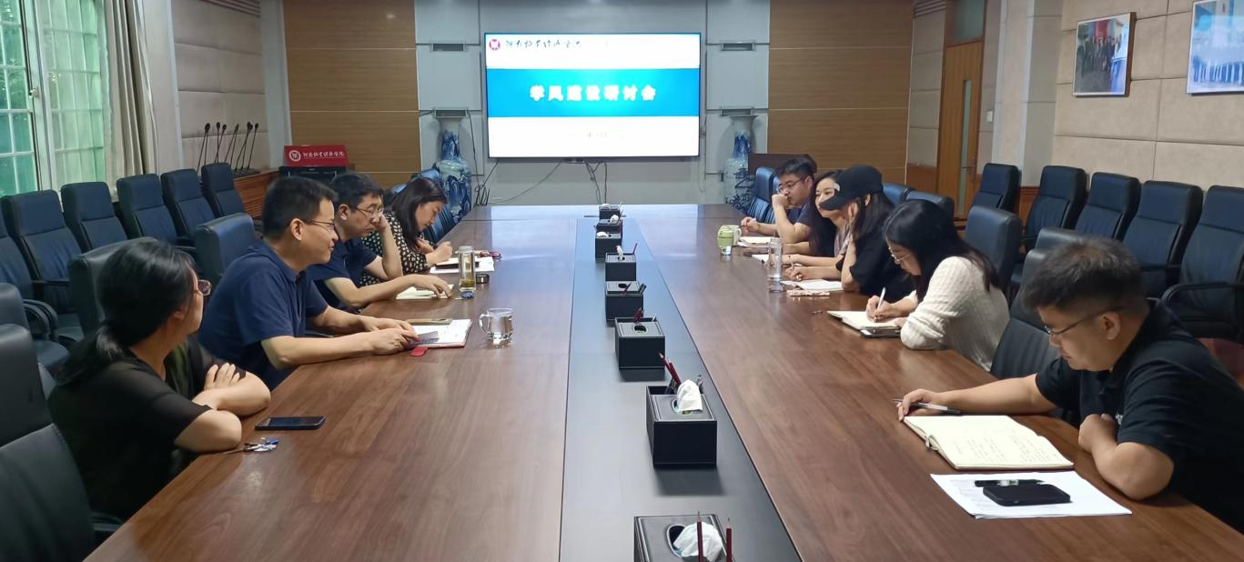 为进一步落实立德树人根本任务,不断提升人才培养质量,加强学院学风建设,近日,国际教育学院在教学办公楼113会议室召开学风建设研讨会。学院科级以上干部参加会议。会议由院长胡晓波主持。
