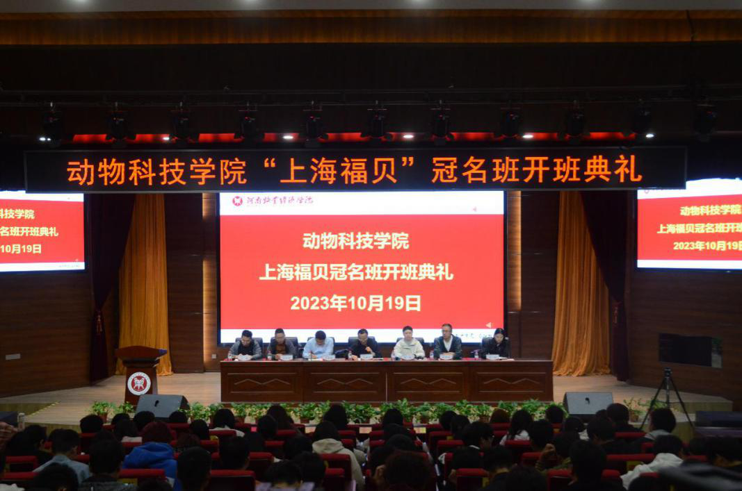 为持续深化产教融合,积极构建校企合作新桥梁,近日,动物科技学院在1号教学楼合100举办“上海福贝”冠名班开班仪式。上海福贝宠食研究院研发主管党涵,动物科技学院党委书记王建伟、副书记李建伟出席开班仪式。冠名班全体师生参加仪式,仪式由动物科技学院党政办公室副主任马帅主持。