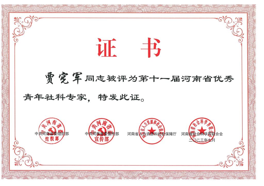 近日,经河南省优秀青年社科专家评委会评选,省优秀青年社科专家评选工作领导小组研究,第十一届“河南省优秀青年社科专家”评选结果揭晓,威尼斯官网工商管理学院院长贾宪军成功入选。