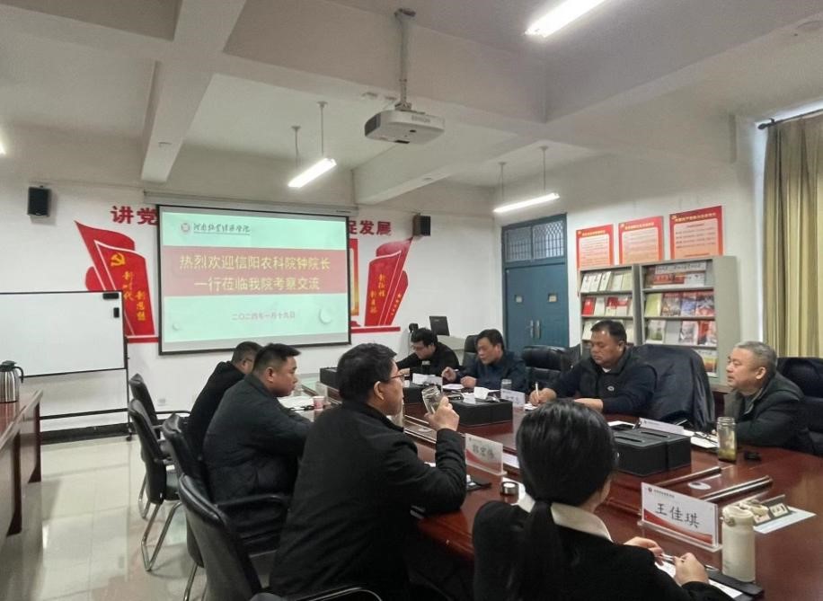 2024年1月19日,信阳市农科院院长钟思志、副院长段斌、信阳菜专班原主任代军、信阳市农科院黄靖元一行4人到威尼斯官网食品与生物工程学院考察交流并在生工组团A426会议室召开座谈会。学校社会服务办公室副主任郑高峰,食品与生物工程学院院长邹建,副院长郭宏伟及相关负责人、教师代表参加了座谈会,座谈会由邹建主持。