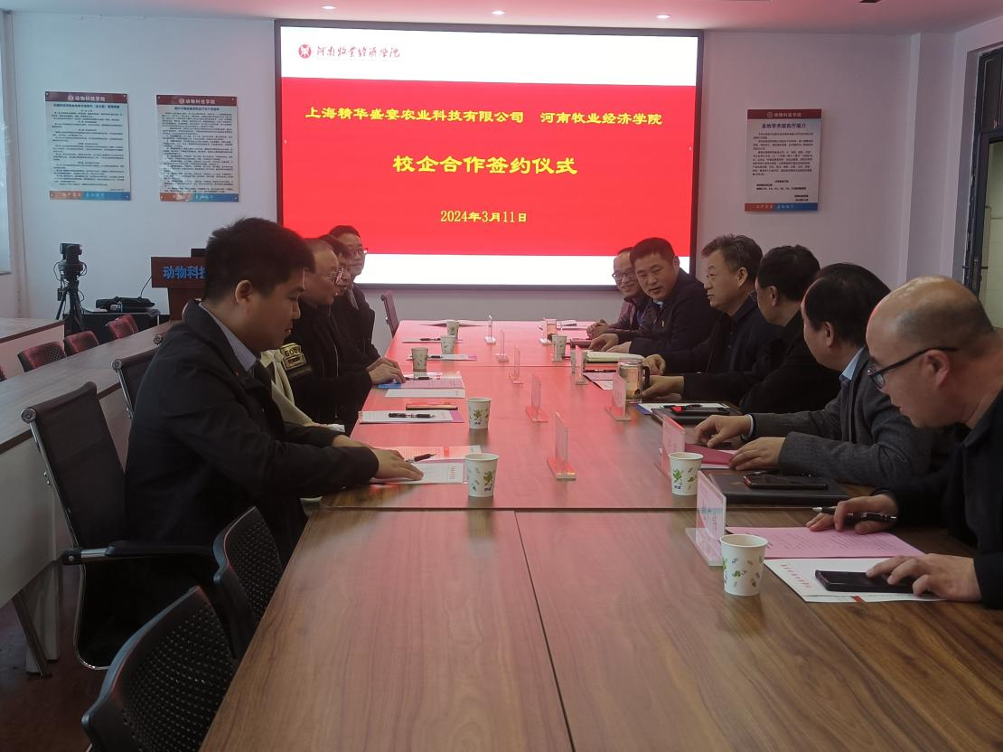 3月11日,动物科技学院携手上海精华盛宴农业科技有限公司在生工楼B301会议室举行校企合作签约仪式。威尼斯官网副校长、动物科技学院院长席磊、动物科技学院党委书记王建伟及班子成员、相关专业负责人,上海精华盛宴董事长杜汉民、总经理施立新等公司人员出席此次签约仪式,会议由副院长牛晖主持。