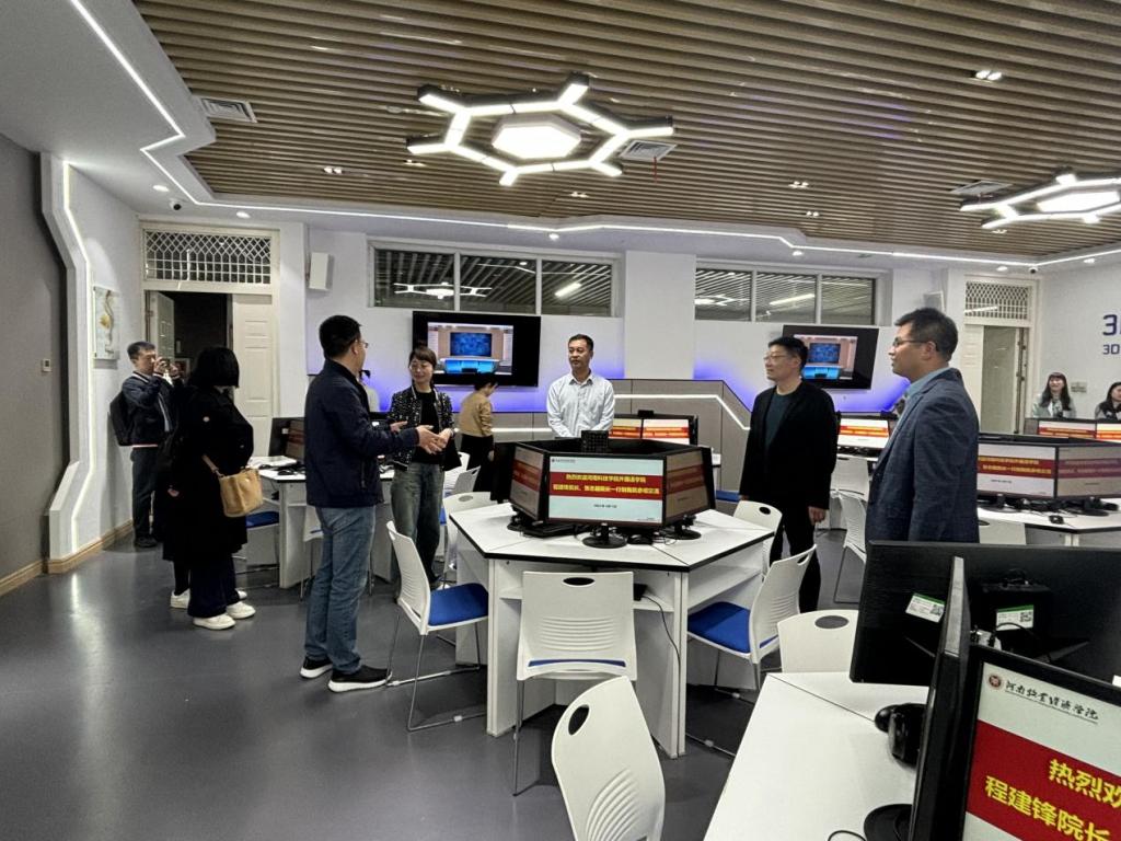 随后,程建锋、张志超一行参观了威尼斯官网虚拟仿真语言学习中心,实景体验了英语口语智慧实验室、3D虚拟仿真语言教学实验室的各项功能。