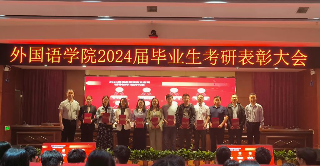 研途璀璨,未来可期。此次表彰大会既是对该院优秀指导教师无私奉献的肯定,也是对考研优秀学子拼搏精神的鼓励,更是传递榜样的力量,营造积极的学习氛围,对学院学风建设工作再动员、再部署、再落实,推动外国语学院人才培养的高质量发展。(王仲宇/文 卢昊/图)