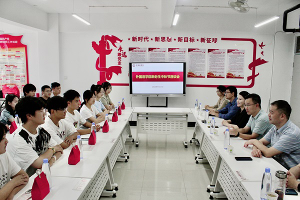 为弘扬中华优秀传统文化,增进师生情谊,9月17日,外国语学院在“一站式”学生社区12号楼举办“情暖社区庆中秋 师生同聚启新程”座谈会,师生共聚一堂,共贺佳节、共话成长、共送祝福。外国语学院党委书记王友峰、院长陈延潼、党委副书记周倩、副院长闻华、辅导员及20余名学生代表参会。座谈会由周倩主持。
