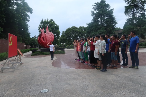 为深入学习贯彻习近平新时代中国特色社会主义思想和党的十九大精神,庆祝中国共产党成立97周年,加强教师党员理想信念教育,6月23日至24日,动物医学院组织教师党员赴革命老区新县接受红色革命传统教育。