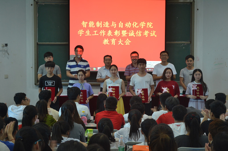 为表彰、鼓舞和激励学生认真学习,增强考风考纪建设,树立良好的学风,6月28日,智能制造与自动化学院召开学生工作表彰暨诚信考试教育大会。