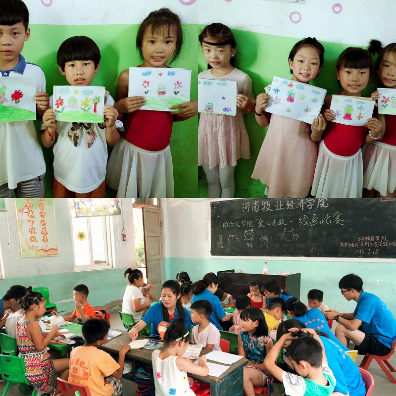 7月15日下午,暑假社会实践小分队在贺营小学开展了以“绘画触动心灵 色彩点亮生活”为主题的绘画课堂支教活动。