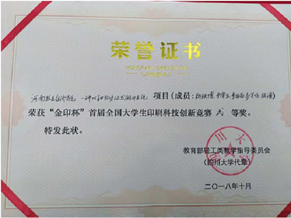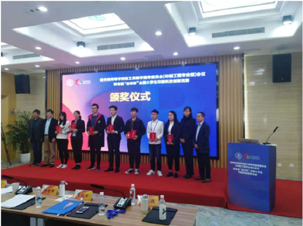 10月22日,教育部高等学校轻工类教学指导委员会(印刷工程专业组)会议暨首届“金印杯”全国大学生印刷科技创新决赛在北京印刷学院举行。经演讲、答辩及评审组评比,威尼斯官网包装与印刷工程学院参赛作品《一种双轴自动钢印系统》荣获二等奖。