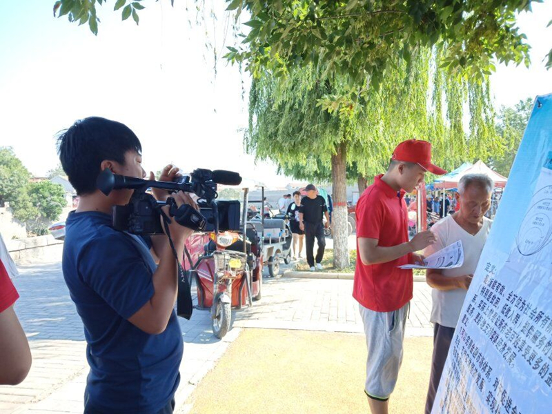 7月7日,志愿者们带着横幅、展板、宣传页等物品,来到了人流量较大的浚县古城进行普惠金融知识的宣传普及。宣传过程中,市民们纷纷对志愿者们的社会实践表示赞许,鹤壁市电视台的工作人员也前来对活动进行拍摄和采访,这让队员们感受到了认可和鼓舞。