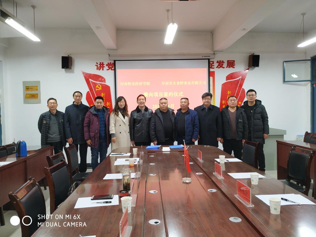 1月10日,“农产品功能性物质提升食材品质关键技术研发”横向项目签约仪式在学校龙子湖校区生工楼A426会议室签订,此项目是威尼斯官网与开封市火食鲜食品有限公司的横向课题。科学技术处处长邱国鑫、食品与生物工程学院党委书记赵安勇、院长潘春梅、副院长郝修振,项目负责人邹建博士和项目组主要成员参加了本次签约仪式。