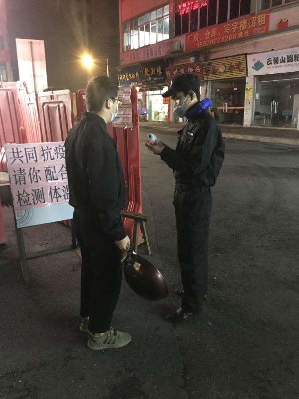 18级应英01班陈合阳同学,在社区村委会的组织下自愿加入志愿工作,主动申请夜间20:30-8:30(次日)为广东省广州市天河区东圃镇前进村委会宦溪社区的村民挨家挨户测量体温、发放防疫知识手册,并对社区出入人员进行登记,为了消除人口流动的隐患,及时与外来人员沟通,落实好防疫工作的每一步。