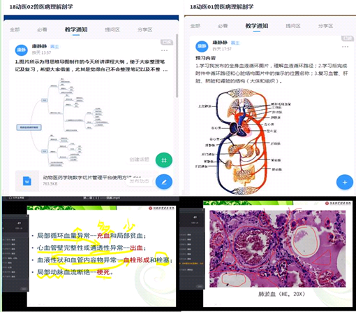 自2月10日以来,动物医药学院在校党委和校行政的集中统一领导下,按照学校《关于进一步加强做好新型冠状病毒感染的肺炎疫情防控工作的通知》和教务处《关于延迟开学期间组织开展远程在线教学的通知》要求,以教育信息化的理念转变为前提,以提高课程教学质量和学生普遍接受为标准,紧密结合师生、课程、网络和环境实际,不断完善教学方法,创新教学模式,实施了多个网络平台交叉混合使用、多渠道交流互动、多形式授课的网络教学。