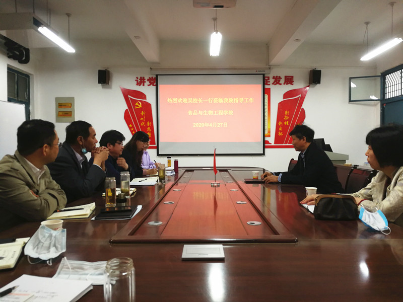 4月27日上午,副校长吴中到食品与生物工程学院调研指导工作,高教研究所所长李君玲陪同调研。