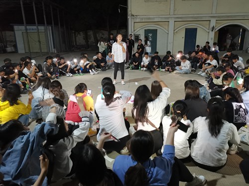 首先,我院各位代班分工合作去采购物品和零食,并借来了音响设备,为新生的联谊会做足了准备。联谊会上,各班同学围在一起席地而坐,与代班打成一片,讲段子、唱歌、跳舞等表演应有尽有,大家都在展现自己最美好的样子。当有同学表演时,大家都打开手机的闪光灯,为表演者献上自己最热烈的掌声,与祖国同乐,同秋月助兴。期间,我院团委副书记王雪冰和辅导员杨奇奇亲临现场,祝愿大家双节快乐,并表示物电是一个大家庭,我们每个人都是物电的一份子,要相互扶持,相互帮助,遇到问题要及时找老师进行沟通交流,共建和谐的物电学院。