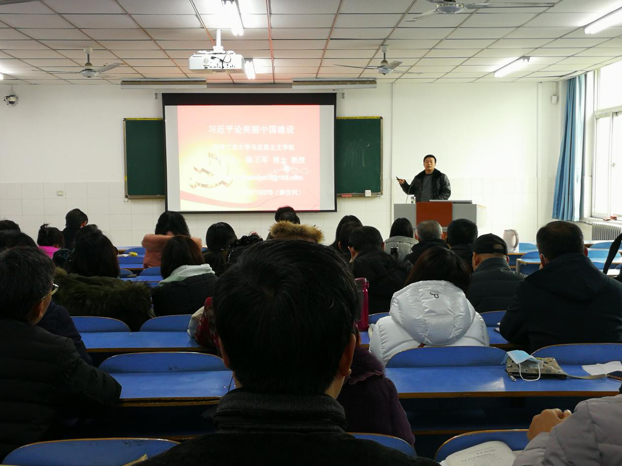 12月3日下午,马克思主义学院邀请教育部学位中心评审专家、国家社科规划办同行评议专家、河南工业大学理论宣讲团成员、河南工业大学马克思主义学院杨卫军教授在英才校区E-307教室做了题为《习近平论美丽中国建设》的学术报告,报告会由马克思主义学院党总支书记王本聚主持,学院全体教师聆听了报告会。