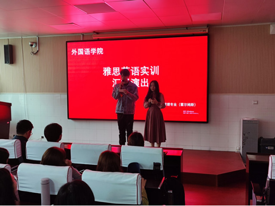 实训汇报展示现场,同学们精神抖擞。“Welcome to Henan”重读了“老家河南”,带领大家领略河南秀美的山川、厚重的文化和悠久的历史,增强大学生文化自信;有关保护地球家园的演讲,表达了青年大学生对环境保护的关切,彰显了新时代年轻人的担当精神;英文歌曲、话剧表演和电影配音串烧不仅汇报了实训成果,更展示了当代大学生多才多艺。