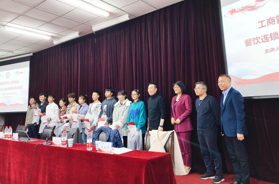 薛海辰以姐弟俩品牌为例,为同学们讲述了餐饮连锁行业的未来发展及商业模式的选择,分析了餐饮连锁企业的标准化、统一化、规模化的经营形式与传统餐饮单店经营相比具有的明显优势。