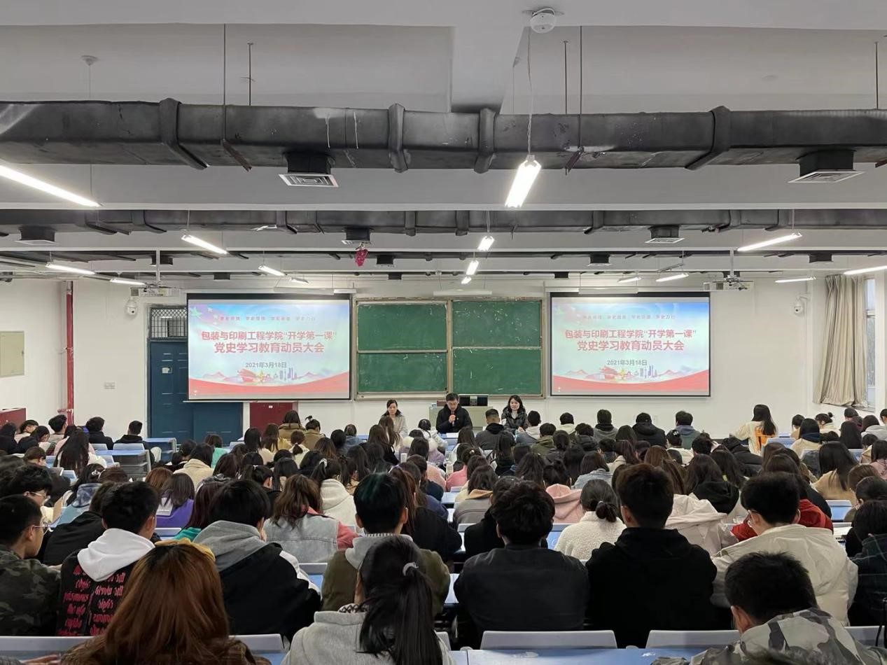 近日,包装与印刷工程学院在龙子湖校区二号教学楼C-225实验室和A-300合班教室分别召开全院教职工和学生党史学习教育动员大会。