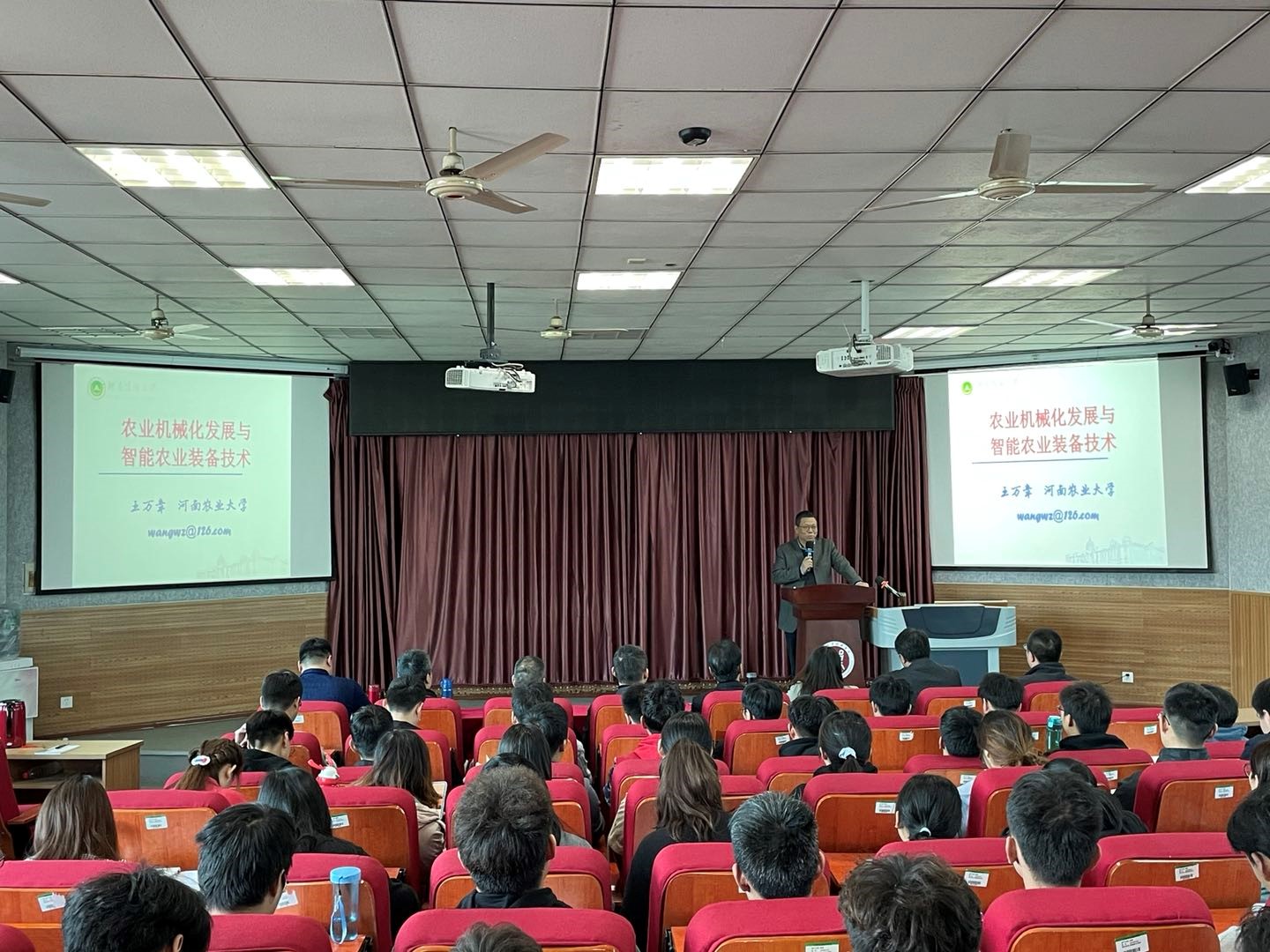 3月25日下午,能源与智能工程学院举办“名师讲坛”报告会,邀请河南农业大学机电工程学院博士生导师王万章教授在北林校区教学楼A-200为师生作了题为“十四五农业机械化发展战略与智能农业装备技术”学术讲座。能源与智能工程学院领导班子成员、教师代表和农业机械化工程专业的百余名学生参加报告会。报告会由能源与智能工程学院副院长史岳鹏主持。