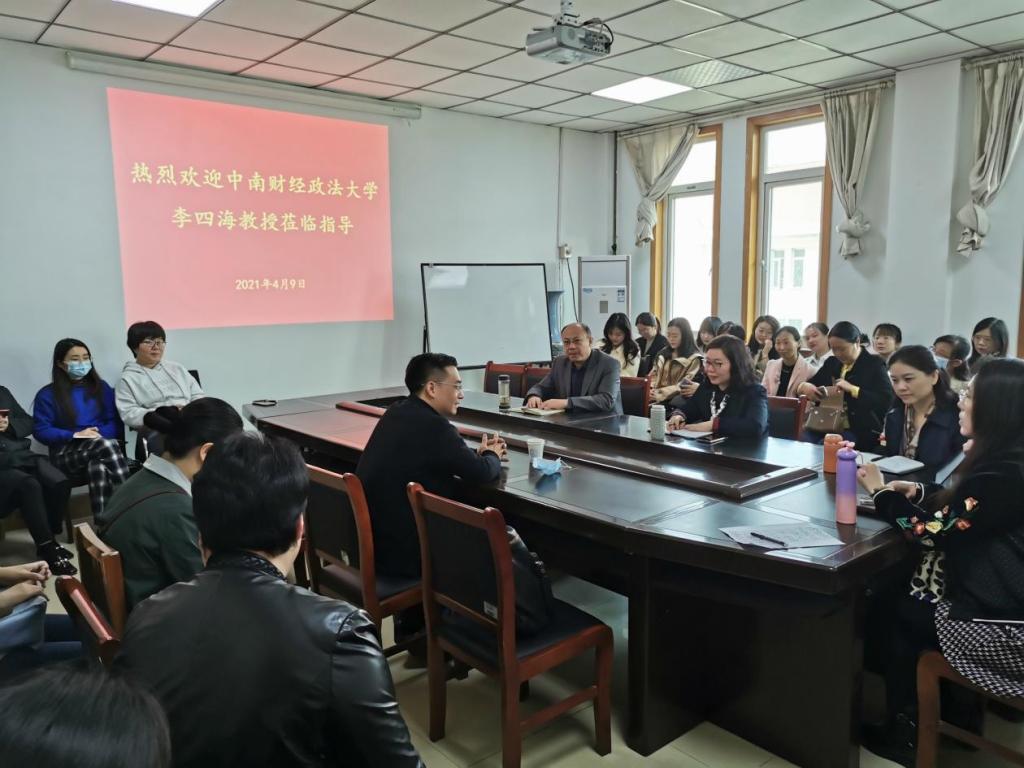 黄良杰在主持时对李四海教授卓著的教学、科研成果进行了介绍,对金融与会计学院的教学、科研和师资等情况进行了说明。
