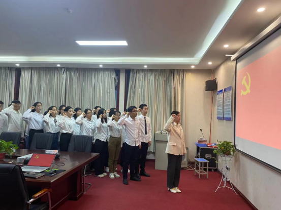 学生党支部书记段婧组织学生党员面向党旗重温入党誓词,号召广大学生党员增强党性、提振精神,始终牢记入党初心,充分发挥党员的先锋模范作用,以饱满的热情投身到学习和学校本科教学工作合格评估中去。(祝聪楠/文 图)