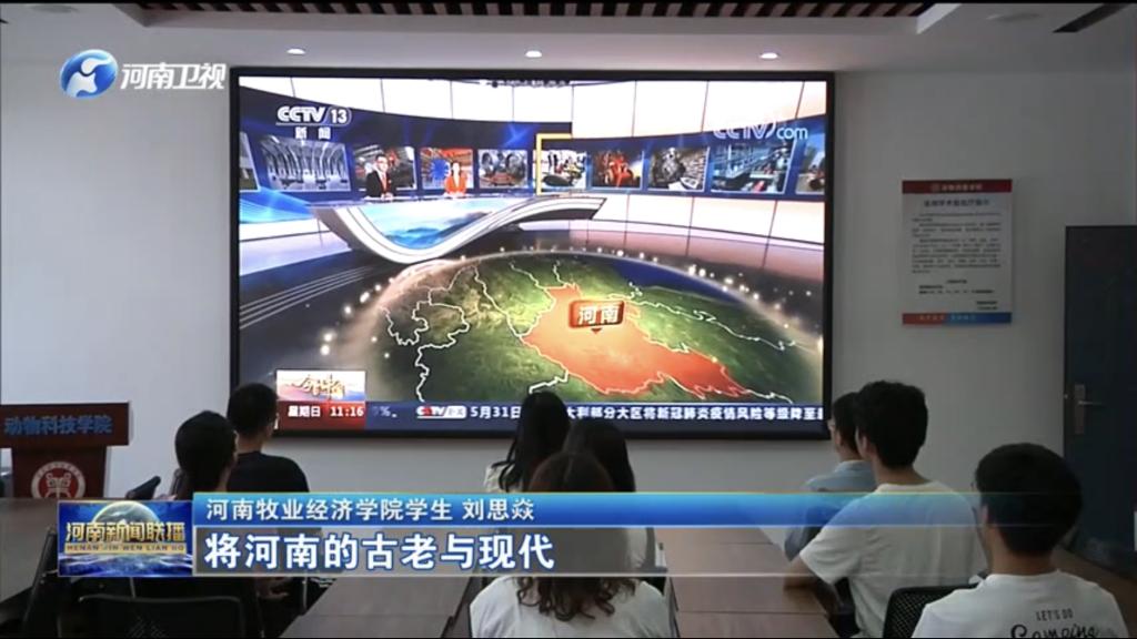 直播后,动物医药学院2018级动物医学(中兽医)专业学生刘思焱和2018级动物药学专业学生尚义昆接受河南广播电视台采访。刘思焱在采访中说到:“在直播中,我看到了河南日新月异的变化发展,它将河南的古老与现代、传统与时尚、厚重与活力融为一体。特别是洛阳古都的新面貌,自由贸易之路再拓宽。河南正在打造立体丝绸之路,这是带给我们拥抱世界和未来的新契机。作为一名新时代涉农高校的青年大学生,我将把“学农、知农、爱农”作为目标,把强农兴农作为己任,积极投身于农牧业大省的现代化建设中,发挥青年学子的光和热。”