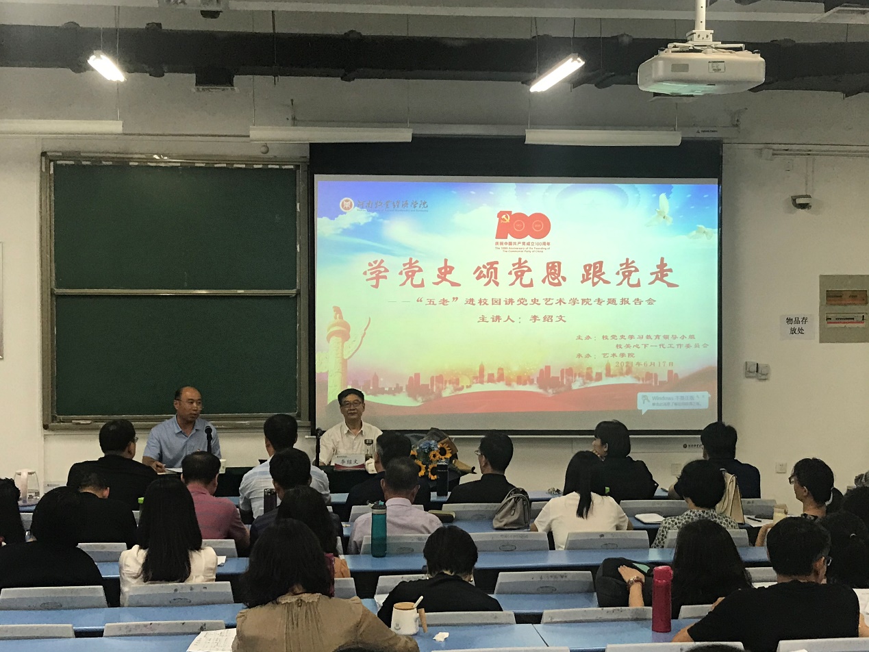 近日,艺术学院党委邀请威尼斯官网原党委副书记李绍文教授,开展“学党史、颂党恩、跟党走”专题报告会。艺术学院全体教师,学生党员代表和入党积极分子代表共计160余人参加报告会。报告会由艺术学院党委书记王在钦主持。