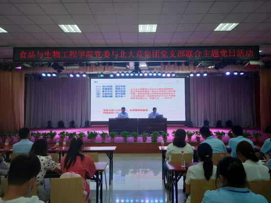 近日,食品与生物工程学院(酒业学院)党委与北大荒集团党支部在龙子湖校区大学生活动中心联合开展主题党日活动,热烈庆祝中国共产党的百年华诞。北大荒集团党支部39名职工党员与食品与生物工程学院(酒业学院)110余名师生党员参加此次活动。活动由食品与生物工程学院(酒业学院)党委书记赵安勇主持。