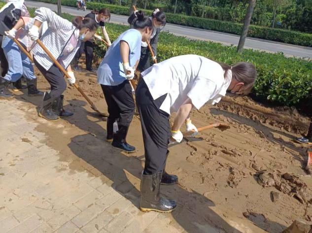 2020级商务英语02班李然参加上街团委组织的道路清淤志愿活动。她不怕脏不怕累、忍着刺鼻的腥臭,积极进行道路清淤任务,当天的太阳很大,没有人叫苦叫累。每个人都汗流浃背,彼此合作,共同努力。