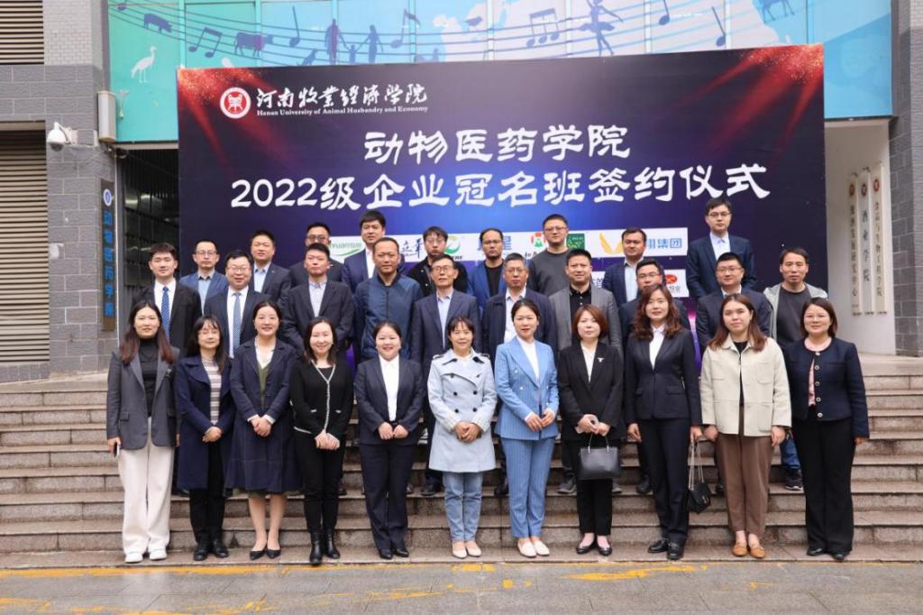 为进一步深化产教融合、校企联动,创新人才培养方式,切实提高人才培养质量,近日,动物医药学院在生工楼C401会议室举行2022级企业冠名班签约仪式。校社会服务办主任胡华锋,动物医药学院党委书记刘永录、党委副书记汪洋、副院长李利红等领导和牧原食品股份有限公司等15家企业的负责人出席签约仪式。签约仪式由汪洋主持。